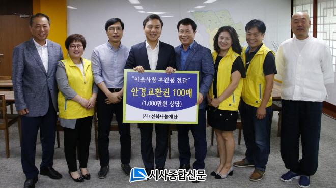 [ÀüÁÖ/½Ã»çÁ¾ÇսŹ®]¿À½ÂÅà ±âÀÚ = (»ç)ÀüºÏ³ª´®Àç´Ü(ÀÌ»çÀå Áø¿ì¼±)Àº 23ÀÏ Àú¼ÒµæÃþÀ» À§ÇØ ½á´Þ¶ó¸ç ÀüÁֽÿ¡ 1õ¸¸ ¿ø »ó´çÀÇ ¾È°æ±³È¯±Ç 100¸Å¸¦ Àü´ÞÇß´Ù.