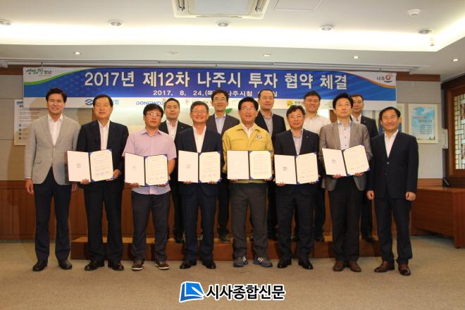 ½Ãû ÀÌȽǿ¡¼ ¿¸° Çù¾à½Ä¿¡´Â ÅõÀÚ ±â¾÷ÀÎ ¼öÇùÁß¾Óȸ ±èº´¿í »óÀÓÀ̻縦 ºñ·ÔÇÑ µ¿¿ìÀü±â(ÁÖ), (ÁÖ)Çコ¹Ì (À¯)Çϴù̼ÒÃà»ê µî °¢ ±â¾÷ ´ëÇ¥µé°ú ÇÔ²² ±è°©¼· Àü³²µµÁö»ç ±ÇÇÑ´ëÇà, °ÀÎ±Ô ³ªÁÖ½ÃÀå, ÀåÇàÁØ ³ªÁÖ½ÃÀÇȸ ºÎÀÇÀå µî 50¿©¸íÀÌ Âü¼®Çß´Ù.
