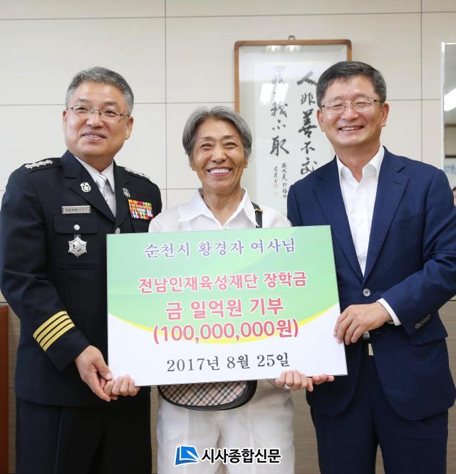 ÁÖÀΰøÀº ¼øÃµ¿¡ °ÅÁÖÇϴ Ȳ°æÀÚ(69․¿©) ¾¾. Ȳ ¾¾´Â 25ÀÏ Àü³²ÀÎÀçÀ°¼ºÀç´Ü¿¡ 1¾ï ¿øÀ» ÀåÇбÝÀ¸·Î ÁöÁ¤±âŹÇß´Ù.