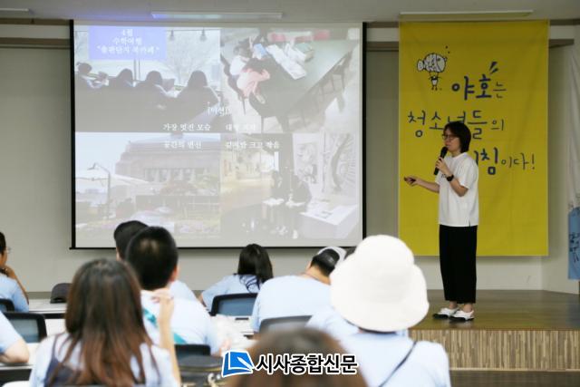 ¡®¸Þ¾Æ¸®¡¯´Â ¾ßÈ£¼¾ÅÍ Ã»¼Ò³â ¿î¿µÀ§¿øÈ¸ À̸§ÀÌ´Ù. À̵éÀº ±¤»ê±¸¿¡ Á¦ ¸ñ¼Ò¸®¸¦ È®½ÇÇÏ°Ô ÀüÇÏ¸é¼ ¾ßÈ£¼¾ÅÍ ¿î¿µÀ» ÁÖµµÇÑ´Ù. ¡®¸Þ¾Æ¸®¡¯°¡ ÁÖ¸ñ¹Þ´Â °ÍÀº ¾ßÈ£¼¾ÅÍ ¿î¿µÀ» ³Ñ¾î ¹æ¹® ¼Õ´ÔµéÀ» Á÷Á¢ ¾È³»Çϱ⠶§¹®ÀÌ´Ù. ÇлýÀ̶ó´Â Á¶°ÇÀ¸·Î ÈÞÀÏ¿¡¸¸ ¸¶ÀÌÅ©¸¦ ÀâÁö¸¸, Çõ½Å ¼º°ú¸¦ ¸¸µç ´ç»çÀÚµéÀÌ ³ëÇϿ츦 Á÷Á¢ ¼³¸íÇϱ⠶§¹®¿¡ ¹æ¹®°´µéÀÇ È£ÀÀÀÌ Å©´Ù. ¶Ç ¾î¸¥ÀÌ °¡¸£Ä¡´Â ±âÁ¸ °ü½ÀÀ» µÚÁý¾î û¼Ò³âÀÌ ¡®¾î¸¥À» °¡¸£Ä¡´Â ¸ð½À¡¯À» ½Å¼±ÇÏ°Ô ¹Þ¾ÆµéÀÌ´Â ºÐÀ§±â´Ù.