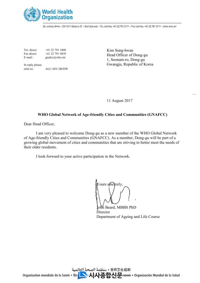 µ¿±¸´Â À̹ø WHO °í·Éģȵµ½Ã °¡ÀÔ ÀÎÁõÀ¸·Î Àü ¼¼°è ÁÖ¿äµµ½Ã¿Í Á¤º¸°øÀ¯ ¹× ±³·ùȰµ¿À» ÅëÇØ ¼±ÁøÈµÈ °í·É»çȸ ´ëÀÀÀü·«°ú ³ëÀκ¹Áö Á¤Ã¥ÀÇ ±¹Á¦»çȸ °¡À̵å¶óÀÎÀ» Àû¿ëÇÒ ¼ö ÀÖ°Ô µÆ´Ù. ¶ÇÇÑ WHO¶ó´Â ±¹Á¦°øÀαⱸÀÇ ÀÎÁ¤°ú Áö¿øÀ» È®º¸ÇØ Ã¼°èÀûÀÎ °í·ÉÄ£ÈÁ¤Ã¥À» ÃßÁøÇÒ ¼ö ÀÖ´Â µ¿·ÂÀ» ¸¶·ÃÇß´Ù.