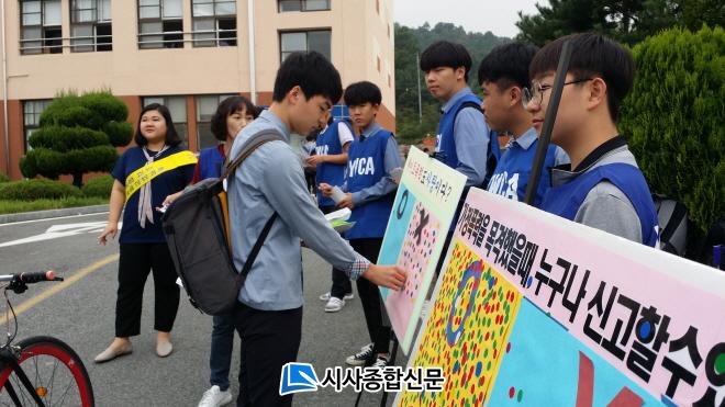 ƯÈ÷, ÇØ´çÇб³ Çкθð¿Í ½Ã, °æÂû, °ü·Ã »ó´ã¼¾ÅÍ Á¾»çÀÚ µîÀÌ 50¿©¸íÀÌ ÇÔ²² Ä·ÆäÀÎÀ» ÁøÇàÇÏ¸é¼ ¿©¼ºÆø·Â Àνİú °ü·ÃÇÑ OXÆÇ ½ºÆ¼Ä¿ ºÙÀ̱â, È«º¸ ¸®Çø´°ú È«º¸¹°Ç°À» Àü´ÞÇÏ¿´´Ù. ¸ðµÎ°¡ ¡®Æø·Â±ÙÀý¡¯À̶ó´Â ÇϳªÀÇ ¸¶À½À¸·Î µî±³ÇÏ´Â Çлýµé¿¡°Ô µû¶æÇÑ ÀÀ¿ø¸Þ½ÃÁö¿Í Çб³Æø·Âµµ ÇÏÁö ¸»ÀÚ´Â ¸»µµ ÇÔ²² °Ç³×¸ç ¼º°øÀûÀ¸·Î Ä·ÆäÀÎÀ» ¸¶¹«¸®ÇÏ¿´´Ù.