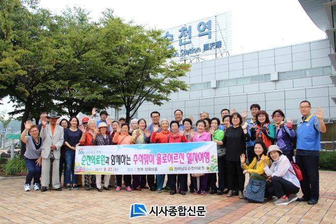 [¼øÃµ/½Ã»çÁ¾ÇսŹ®]¿À½ÂÅà ±âÀÚ = ÄÚ·¹ÀÏ Àü³²º»ºÎ »çȸºÀ»ç´Ü(´ÜÀå Á¶ÇüÀÍ)Àº 9¿ù 27ÀÏ ¼øÃµ½Ã µ¶°Å³ëÀÎ 25¸íÀ» ÃÊû, ÀüÁÖ·Î ¶°³ª´Â ¡°Ãß¼® Çູ ÇØÇÇÆ®·¹ÀΡ±À» ¿îÇàÇÏ¿´´Ù.