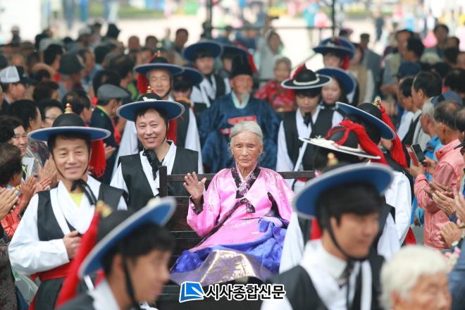 À̳¯ Çà»ç¿¡´Â ÃÊû¾î¸£½Å 1,000¿© ¸í°ú °ü±¤°´ 5,000¿© ¸íÀÌ ÇÔ²²Çß°í ¡®Á¦17ȸ °î¼º½ÉûÃàÁ¦¡¯°¡ ¿¸®°í ÀÖ´Â ÇöÀå¿¡¼ ¿·Á º¼°Å¸®°¡ dz¼ºÇÏ°í ´Ù¾çÇÑ °¡¿îµ¥, 4°³ ±ºÀÇ ´ëÇ¥ 100¼¼ ¾î¸£½Å ³× ºÐÀ» »çÀα³(°¡¸¶)·Î ¹«´ë¿¡ ¸ð½Ã°í ¾ç·Î¿¬ÀÇ À翬, õ¼öÆÐ ÁõÁ¤À¸·Î Àå¼ö¸¦ ÃàÇÏÇϰí, °Ç°À» ±â¿øÇÏ¿´À¸¸ç, 4°³ ±ºÀÇ ¸ð¹ü³ëÀÎ 4¸í°ú È¿ºÎ 4¸í¿¡°Ô °æ·ÎȿģÀÇ ÀüÅëÀû ¹Ì´ö °è½Â°ú È¿ ½Çõ ¹®È È®»êÀ» À§ÇØ Ç¥Ã¢ÆÐ¸¦ µå·È´Ù.