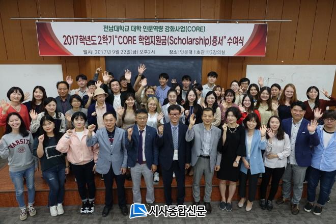 Àü³²´ëÇб³ ´ëÇÐÀι®¿ª·®°È(CORE, ÄÚ¾î) »ç¾÷´Ü(´ÜÀå ±è¾çÇö ¡¤ öÇаú ±³¼ö)Àº ÃÖ±Ù Àι®ÇÐ Àü°ø Çлý 48¸í(Çкλý 28¸í, ¼®»ç°úÁ¤ 20¸í)À» ¼±¹ß, CORE Çо÷Áö¿ø±Ý(CORE Scholarship) Áõ¼¸¦ ¼ö¿©Çß´Ù.