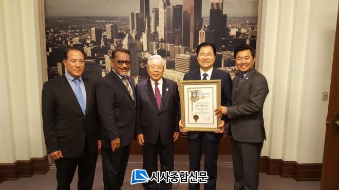 ½Å¿ìö ±º¼ö´Â 13ÀÏ ¿ÀÀü10½Ã (ÇöÁö½Ã°£) LA½ÃûÀ» ¹æ¹®ÇØ Çãºê ¿þ½¼ ½ÃÀÇ¿øÀÇ ¾È³»·Î ½ÃÀÇȸ µîÀ» µÑ·¯º¸°í ¿þ½¼ ÀÇ¿ø »ç¹«½Ç¿¡¼ LA ¸í¿¹½Ã¹ÎÁõÀ» Àü´Þ¹Þ¾ÒÀ¸¸ç, LA½Ã´Â ¿Ïµµ±º°ú Áö¼ÓÀûÀÎ ±³·ù¸¦ ÅëÇØ »óÈ£ ¹ßÀüÀûÀÎ °ü°è·Î ¹ßÀü½Ã۱â À§ÇØ LA ¸í¿¹½Ã¹ÎÁõÀ» Àü´ÞÇß´Ù.