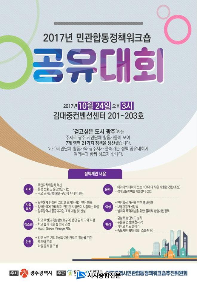 ÀÌ ÀÚ¸®¿¡¼´Â Áö³ 2¿ùºÎÅÍ Áö¿ª ¡®°È°í ½ÍÀº µµ½Ã ±¤ÁÖ¡¯¸¦ ÁÖÁ¦·Î ÀÚÄ¡, ȯ°æ, û¼Ò³â, ¹®È, ¾ÈÀü, ¿©¼º, »çȸº¹Áö µî 7°³ ºÐ°ú 45´Üü 21°³ Á¤Ã¥¿¡ ´ëÇØ 3°³¿ù°£ ³íÀÇÇÑ °á°ú¸¦ ¹ßÇ¥ÇÑ´Ù.