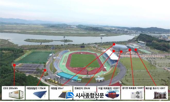 ¸ðµç ½Ã¼³À» ¿¬Áß¹«ÈÞ(06~22½Ã)°³¹æ ÁßÀÎ ³ªÁÖÁ¾ÇÕ½ºÆ÷Ã÷ÆÄÅ©´Â Çõ½Åµµ½Ã Á¶¼ºÀ¸·Î ÀÎÇÑ ÀÌ¿ë Àοø Áõ°¡(ÀÏ Æò±Õ 3õ¸í)·Î ¿¡³ÊÁö ¼Òºñ·®ÀÌ ´Ã¾î³ª°í ÀÖÀ½¿¡µµ ºÒ±¸, ž籤, žç¿, ¿¬·áÀüÁö, È÷Æ®ÆßÇÁ, ¿¡³ÊÁöÀúÀåÀåÄ¡ µî ½ÅÀç»ý¿¡³ÊÁö 7Á¾À» ±âÁ¸ ¼³ºñ¿¡ ¿¬°èÇÑ ¿¡³ÊÁöÀÚ¸³½Ã½ºÅÛÀ» ±¸ÃàÇÏ¿©, Àü±â ¹× °¡½º °ø°ø¿ä±Ý ¿¬ 1¾ï5õ¸¸ ¿øÀÇ ºñ¿ë Àý°¨ È¿°ú¸¦ °ÅµÎ°í ÀÖ´Ù.