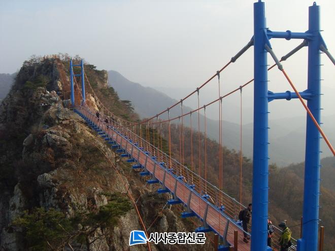 ÇØ¹ß 756mÁöÁ¡ÀÇ ¸¶´ç¹ÙÀ§¿Í ÀýÅ͹ÙÀ§¸¦ ¿¬°áÇÏ´Â ¿¬Àå 66m, Æø 1.2mÀÇ »ê¾Ç Çö¼ö±³·®À¸·Î ÃÖ´ë 130¸íÀÌ µ¿½Ã¿¡ Áö³ª°¥ ¼ö ÀÖ´Ù. ´Ù¸® Áß¾Ó¿¡ °ÈÀ¯¸® Á¶¸Áâ(°¡·Î 40cm, ¼¼·Î 1m) 3°÷ÀÌ ¼³Ä¡µÅ ÇÏ´Ã À§¸¦ °È´Â µí Â¥¸´ÇÑ ½º¸±Àº ¹°·Ð »ç¹æÀÌ Æ®¿© ÀÖ¾î Áö¸®»ê, ¹«µî»ê, ¹é¿î»ê, ¸ðÈÄ»ê µîÀ» Á¶¸ÁÇÒ ¼ö ÀÖ´Ù.