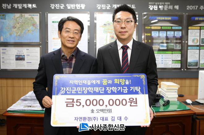 ÀÚ¿¬È¯°æ(ÁÖ) ±è´ë¼ö´ëÇ¥´Â °Ç¼³Æó±â¹° Áß°£Ã³¸®¾÷ü(°Áø±º ¼ºÀü¸é ¼ÒÀç)¸¦ ¿î¿µÇϰí ÀÖ´Ù. ºÎÄ£ °í ±èÇâ¿Á¾¾´Â 2006³âºÎÅÍ 2010±îÁö 5õ3¹é¸¸¿øÀ» ±âŹÇß´Ù. ±è´ë¼ö´ëÇ¥´Â ÈÄÁø¾ç¼ºÀ» °Á¶Çϼ̴ø ¼±Ä£ÀÇ ¶æÀ» À̾î¹Þ¾Æ Áö³ 2016³â 5¹é¸¸¿øÀ» ±âŹÇß´Ù. ÀÌ¾î ¿ÃÇØ¿¡µµ 5¹é¸¸ ¿øÀ» ±âŹÇϸç Áö¿ª ÀÎÀç À°¼º¿¡ Å« À̹ÙÁö¸¦ Çϰí ÀÖ´Ù.