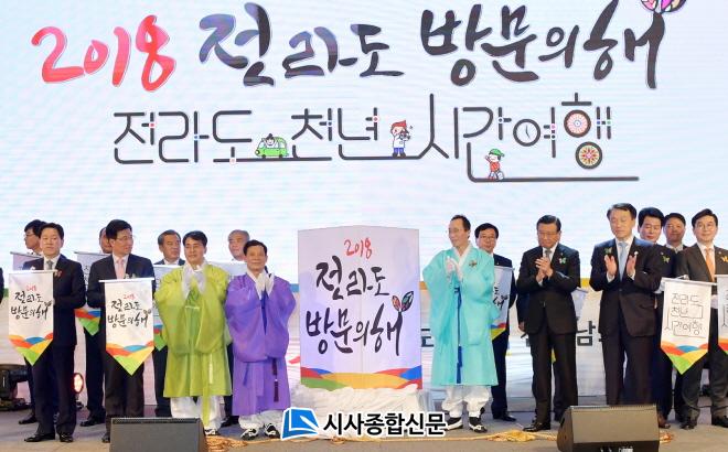 À̳¯ ¼±Æ÷½Ä¿¡¼´Â 2018³â Àü¶óµµ Á¤µµ õ³âÀ» ¸Â¾Æ È£³²±Ç 3°³ ½Ã?µµ°¡ »óÈ£ Çù·ÂÇØ ¹æ¹®°´À» À¯Ä¡ÇÏ´Â µî Àü¶óµµ°¡ Çѱ¹ÀÇ ¹Ì·¡ õ³â °ü±¤À» À̲ø¾î°¥ °ÍÀÓÀ» ¼±¾ðÇß´Ù. ¼±Æ÷½ÄÀº õ³â½ºÅ丮 °¿¬°ú ºñÀü¿µ»ó »ó¿µ, ¹æ¹®ÀÇ ÇØ ½½·Î°Ç ÆÛÆ÷¸Õ½º¿Í ÃàÇϰø¿¬À¸·Î ÁøÇàµÆ´Ù. ¼±Æ÷½Ä ÈÄ¿¡´Â ¼¼Á¾¹®È¸È¸°ü ¶ß¶ô¿¡¼ 2018 Àü¶óµµ ¹æ¹®ÀÇ ÇØ Á¶Çü¹° Á¦¸·°ú Àü¶óµµ ¸íǰ¿©Çà¿¡ Âü°¡ÇÏ´Â Àü¶óµµ Ž»ç´Ü ÃâÁ¤½ÄÀ» °¡Á³´Ù.