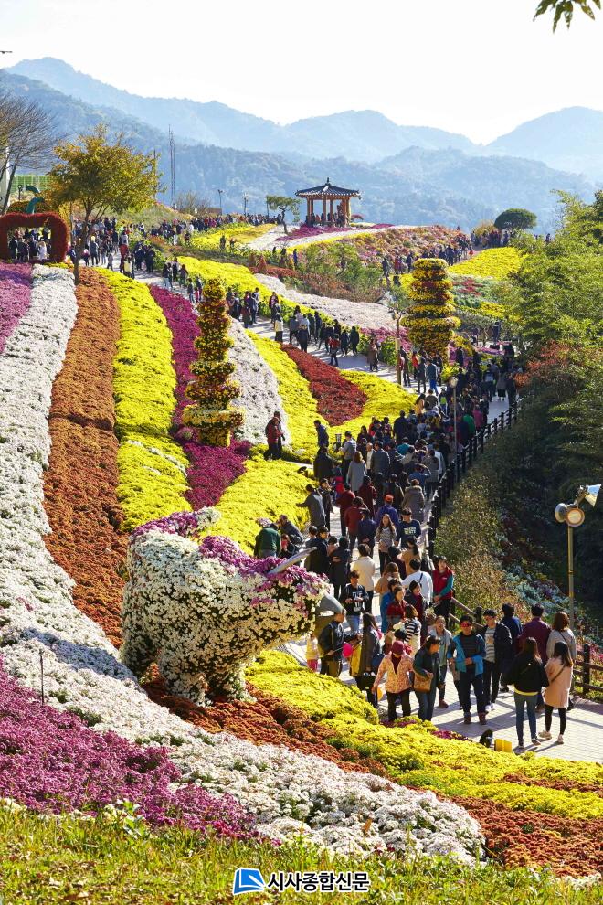 ÇüÇü»ö»öÀÇ ±¹È¸¦ ±¹Èµ¿»ê¿¡ Á¶È·Ó°Ô ¹èÄ¡Çϰí ÇØ¹Ù¶ó±â, ÄÚ½º¸ð½º, ¸ñÈ, ¾ï»õ, ÇÎÅ©¹Ä¸® µî ¿©·¯ Á¾·ùÀÇ ²ÉµéÀÌ ±¹È µî°ú ¾î¿ì·¯Áö¸ç ȼø¸¸ÀÇ µ¶Æ¯ÇÑ Ç³°æÀ» ¿¬ÃâÇÑ °ÍÀÌ´Ù. ÇÎÅ©¹Ä¸® ²É±æÀº ¸ùȯÀûÀÎ ÀÚŸ¦ »Ë³»¸é¼ »êÃ¥ÄÚ½º·Î Àα⸦ ²ø¾ú°í, ¼¼°èÀ¯»ê ȼø °íÀε¹À» Çü»óÈÇÑ °íÀε¹ °ÔÀÌÆ®¿Í ¿îÁÖ»ç ¿øÇü ´ÙÃþ¼®Å¾, °ø·æ µî ´Ù¾çÇÑ ±¹È Á¶Çü¹°ÀÌ Å½¹æ·Î ÁÖº¯¿¡ Å׸¶º°·Î »õ·Ó°Ô ¼±º¸¿´´Ù.