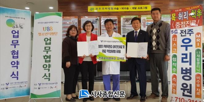 ÀüÁÖ½Ãû¼Ò³â»ó´ãº¹Áö¼¾ÅÍ(¼¾ÅÍÀå Á¤Çý¼±)´Â 14ÀÏ ÀüÁÖ½Ãû¼Ò³âÅëÇÕÁö¿øÃ¼°è(CYS-Net) 1388û¼Ò³âÁö¿ø´Ü(ÀǷᡤ¹ý·üÁö¿ø´Ü) ¼Ò¼ÓÀÇ ÀüÁֿ츮º´¿ø(¿øÀå ±èÀ翱)°ú À§±â û¼Ò³â Áö¿øÀ» À§ÇÑ ¾÷¹«Çù¾àÀ» ü°áÇß´Ù.