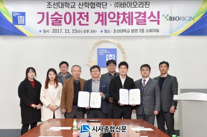 Á¶¼±´ëÇб³ »êÇÐÇù·Â´ÜÀå ±èÀç¼ö ±³¼ö, ¢ß¹ÙÀÌ¿À¸®Áø ±è¿øÁÖ ´ëÇ¥ÀÌ»ç, Á¶¼±´ëÇб³ Àç·á°øÇаú °Çöö ±³¼ö µîÀÌ Âü¼®ÇÑ °¡¿îµ¥ ÁøÇàµÈ À̹ø °è¾àÀº ÀÇ·á¿ë ÇÕ¼º°ñÀÇ ¿øÃµ ±â¼ú ƯÇã 2°Ç¿¡ ´ëÇÑ ¼ÒÀ¯±Ç ÀÌÀüÀ» °ñÀÚ·Î ÇÏ´Â ±â¼úÀÌÀüÀ¸·Î¼, ±â¼ú·á´Â 1¾ï¿øÀÌ´Ù.