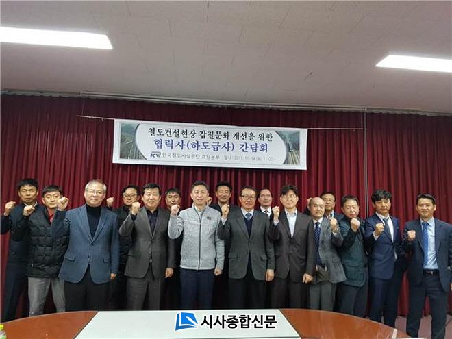 [¼øÃµ/½Ã»çÁ¾ÇսŹ®]³²Àç¿Á ±âÀÚ = Çѱ¹Ã¶µµ½Ã¼³°ø´Ü È£³²º»ºÎ(º»ºÎÀå ÀüÈñ±¤)´Â °ü³» öµµ°Ç¼³ ÇöÀå ÁÖ¿ä 16°³ Çù·Â»ç Á÷¿øµé°ú 11¿ù 14ÀÏ(È)¡15ÀÏ(¼ö) ¾çÀϰ£ °©Áú ¹®È ±ÙÀýÀ» À§ÇÑ °£´ãȸ ¹× Ãß°è üÀ°Çà»ç µî ÈÇÕÀÇ ÀåÀ» °³ÃÖÇß´Ù°í ¹àÇû´Ù.