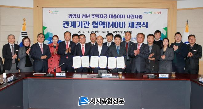 ±¤¾ç½Ã´Â Áö³ 11¿ù 27ÀÏ ¿ÀÈÄ 2½Ã ½Ãû »óȲ½Ç¿¡¼ Á¤Çöº¹ ±¤¾ç½ÃÀå, °íÀ±ÁÖ ½ÅÇÑÀºÇà ºÎÇàÀå, ¹è´ö¼ö Çѱ¹ÁÖÅñÝÀ¶°ø»ç ¼³²±Çº»ºÎÀå µî 20¿© ¸íÀÌ Âü¼®ÇÑ °¡¿îµ¥ ??û³âÁÖÅÃÀÚ±Ý ´ëÃâÀÌÀÚ Áö¿ø»ç¾÷??¾÷¹«Çù¾àÀ» ü°áÇß´Ù°í ¹àÇû´Ù.Çù¾à½Ä¿¡¼´Â ÁÖÅÃÀÚ±Ý À¶ÀÚ¿Í ÀÌÂ÷º¸Àü»ç¾÷ ½ÇÇà¿¡ µû¸¥ ±â°üº° ¿ªÇÒ µîÀ» Á¤Çϰí, ¿øÈ°ÇÑ »ç¾÷ÃßÁøÀ» À§ÇÑ »óÈ£Çù·ÂÀ» ´ÙÁö±â·Î Çß´Ù.