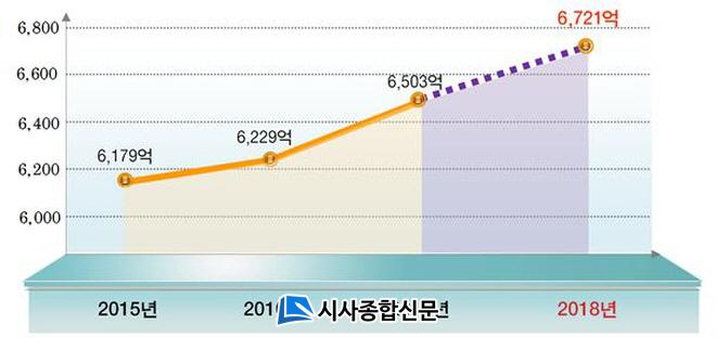 ÀÌ´Â ´çÃÊ Á¤ºÎ¾È 6,382¾ï¿øº¸´Ù 339¾ï¿øÀÌ ±¹È¸´Ü°è¿¡¼ Ãß°¡ Áõ¾×µÇ´Â ¼º°ú¸¦ °Åµç °ÍÀ¸·Î, ÀÍ»ê½Ã ±¹°¡¿¹»êÀº 2015³âµµ 6,179¾ï¿ø, 2016³âµµ 6,229¾ï¿øÀ» È®º¸ÇÏ¿© Á¡ÁøÀûÀ¸·Î Áõ°¡ÇÏ´Ù°¡ 2017³âµµ 6,503¾ï¿ø, 2018³âµµ 6,721¾ï¿øÀ» È®º¸ÇÏ¿© ¿ª´ë ÃÖ°íÄ¡¸¦ °æ½ÅÇß´Ù.
