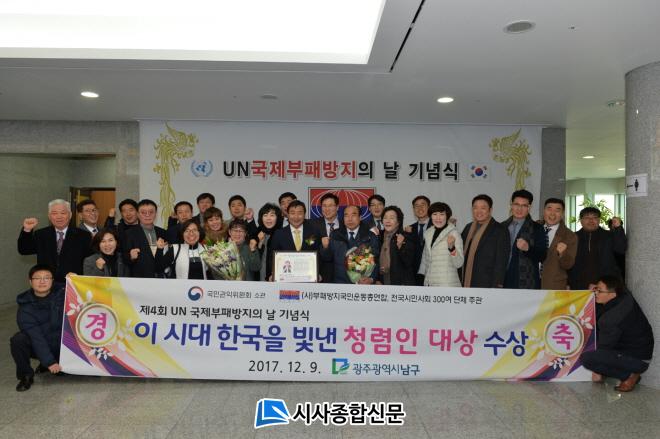 ÇÑÆí ³²±¸´Â ÃÖ±Ù ±¹¹Î±ÇÀÍÀ§¿øÈ¸¿¡¼ ½Ç½ÃÇÑ ¡®2017³âµµ û·Åµµ Æò°¡¡¯¿¡¼ ±¤ÁÖÁö¿ª 5°³ ÀÚÄ¡±¸ °¡¿îµ¥ ÃÖ°íÁ¡À» ±â·Ï, °øÁ÷»çȸÀÇ Ã»·Åµµ Áö¼ö°¡ °¡Àå Åõ¸íÇÏ°í ±ú²ýÇÑ °ÍÀ¸·Î Á¶»çµÆ´Ù. ¶Ç Áö³ 11¿ù¿¡´Â (»ç)ºÎÆÐ¹æÁö±¹¹Î¿îµ¿ÃÑ¿¬ÇÕÀ¸·ÎºÎÅÍ ¹ÝºÎÆÐ ¹× û·ÅȰµ¿ °È¸¦ À§ÇÑ ³ë·ÂÀ» ÀÎÁ¤¹Þ¾Æ û·Å±â°ü ÀÎÁõ¼¸¦ ¹Þ±âµµ Çß´Ù.