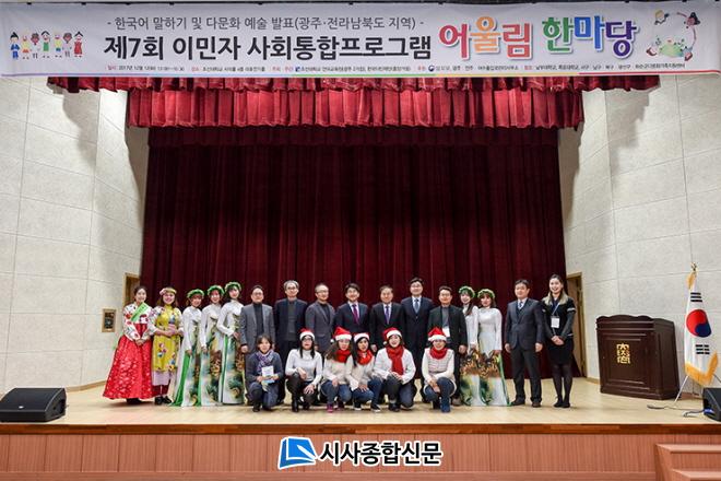 Á¶¼±´ëÇб³(°µ¿¿Ï ÃÑÀå) ¾ð¾î±³À°¿ø(ÀÌ½Â±Ç ¿øÀå)°ú Çѱ¹À̹ÎÀç´Ü(¿ì±âºØ ÀÌ»çÀå) ÁÖ°üÀ¸·Î À̹ÎÀÚ »çȸÅëÇÕÇÁ·Î±×·¥¿¡ Âü¿©ÇÏ´Â ¿Ü±¹ÀεéÀÌ ¸ð¿© Çѱ¹¾î ¸»Çϱâ¿Í ´Ù¹®È ¿¹¼úÀ» ¹ßÇ¥ÇÏ´Â Á¦7ȸ À̹ÎÀÚ »çȸÅëÇÕÇÁ·Î±×·¥ ¾î¿ï¸² ÇѸ¶´ç Çà»ç°¡ 12¿ù 12ÀÏ ¿ÀÈÄ 1½Ã30ºÐ Á¶¼±´ëÇб³ ¼¼®È¦ 4Ãþ ´ëÈ£Àü±âȦ¿¡¼ °³ÃֵǾú´Ù.