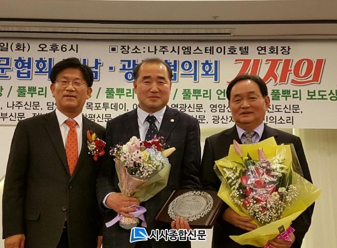 [°î¼º/½Ã»çÁ¾ÇսŹ®]Á¶³²Àç ±âÀÚ = °î¼º±ºÀÇȸ ÁÖ¼ºÀç ÀÇ¿øÀÌ Áö³ 12ÀÏ ³ªÁÖ ¿¥½ºÅ×ÀÌÈ£ÅÚ¿¡¼ Çѱ¹Áö¿ª½Å¹®Çùȸ ±¤ÁÖÀü³²ÇùÀÇȸ¿¡¼ ÁÖ´Â ¡®Ç®»Ñ¸® ÀÇÁ¤´ë»ó¡¯À» ¼ö»óÇß´Ù.