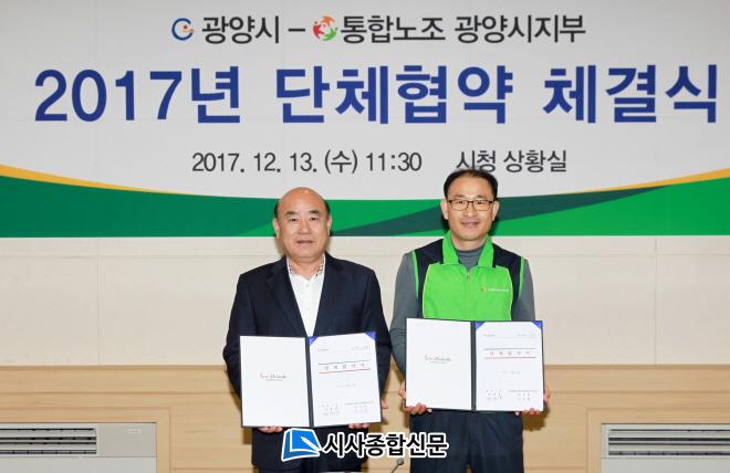 [±¤¾ç/½Ã»çÁ¾ÇսŹ®]Àå¹Î±Ô ±âÀÚ = ±¤¾ç½Ã¿Í ÅëÇÕ³ëÁ¶±¤¾ç½ÃÁöºÎ´Â Áö³ 12¿ù 13ÀÏ Á¶ÇÕ¿øÀÇ ±Ù¹«°³¼±°ú º¹¸®Çâ»ó µîÀ» À§ÇÑ 2017³âµµ ´Üü Çù¾àÀ» ü°áÇß´Ù°í ¹àÇû´Ù.