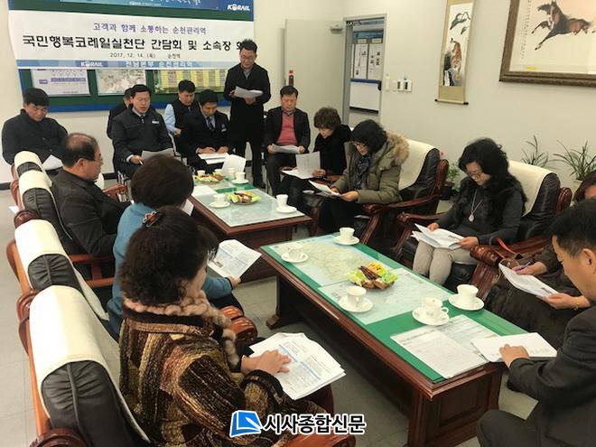 | ÄÚ·¹ÀÏ Àü³²º»ºÎ ¼øÃµ¿ª, ±¹¹ÎÇູ½Çõ´Ü °£´ãȸ °³ÃÖ Áö¿ª´ëÇ¥ ´Ü¿øµé°ú öµµ°ü±¤ Ȱ¼ºÈ¸¦ À§ÇÑ ÀǰßÀ» ³ª´©´Â ½Ã°£À» °¡Á®