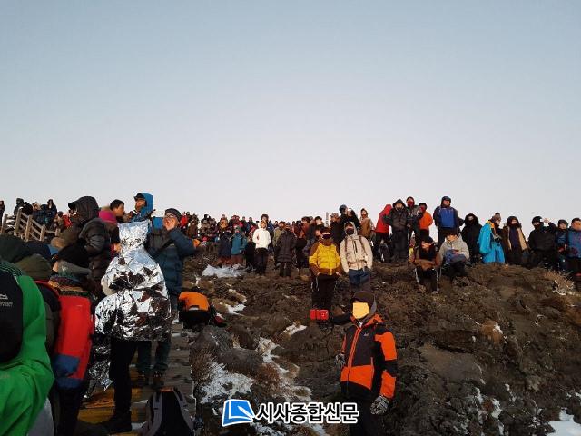 ±Ý°»ê․Áö¸®»ê°ú ÇÔ²² ¿ì¸®³ª¶ó »ï½Å»êÀÇ ÇϳªÀÎ ÇѶó»ê Á¤»ó¿¡¼ »õÇØ ù ÀÏÃâÀ» ¸ÂÀ¸·Á´Â ¸¹Àº Ž¹æ°´À» À§ÇØ ÇØ¹ß 1,950m ´ëÇѹα¹ ÃÖ°íºÀÀÎ ÇѶó»ê Á¤»ó¿¡¼´Â Á¦ÁÖ Àü¿ª¿¡ ºÐÆ÷Çϰí ÀÖ´Â 360¿©°³ÀÇ ¿À¸§ À§·Î ¼Ú¾Æ¿À¸£´Â ÀÏÃâÀÌ Àå°üÀ» ¿¬ÃâÇÒ °ÍÀ¸·Î º¸ÀδÙ.