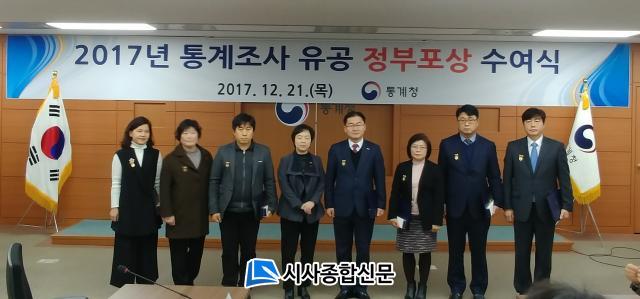 Áö³ 12¿ù 21ÀÏ Á¤ºÎ´ëÀüû»ç¿¡¼ ¿¸° À̹ø Æ÷»ó ¼ö¿©½ÄÀº 2017³â Åë°èÁ¶»ç¸¦ ¼º°øÀûÀ¸·Î ¼öÇàÇÏ¿© Åë°èÁ¶»ç¿¡ ±â¿©ÇÑ °ø·Î¸¦ ÀÎÁ¤¹ÞÀº À¯°ø°ø¹«¿øÀ» ǥâÇß´Ù.
