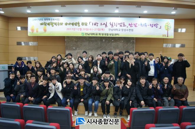 Àü³²´ëÇб³ Çлý»ýȰ»ó´ã¼¾ÅÍ(¼¾ÅÍÀå Ȳ¼®Çö ±³¼ö)´Â Áö³ 2017³â 12¿ù 20ÀÏ(¼ö) ~ 21ÀÏ(¸ñ) Àü³²´ëÇб³ À强¼ö·Ã¿ø¿¡¼ ÇлýµéÀÇ ´ëÇлýȰÀûÀÀ°ú ½É¸®Àû ¾î·Á¿òÀ» µ½±â À§ÇÑ ¡®Èú¸µÄ·ÇÁ¡¯¸¦ °³ÃÖÇß´Ù. Èú¸µÄ·ÇÁ´Â 2011³â óÀ½ ½ÃÀÛÇÑ ÀÌ·¡ 7ȸ ° ¿·ÈÀ¸¸ç À̹ø Ä·ÇÁ¿¡´Â 54¸íÀÇ ÇлýµéÀÌ Âü¿©Çß´Ù.