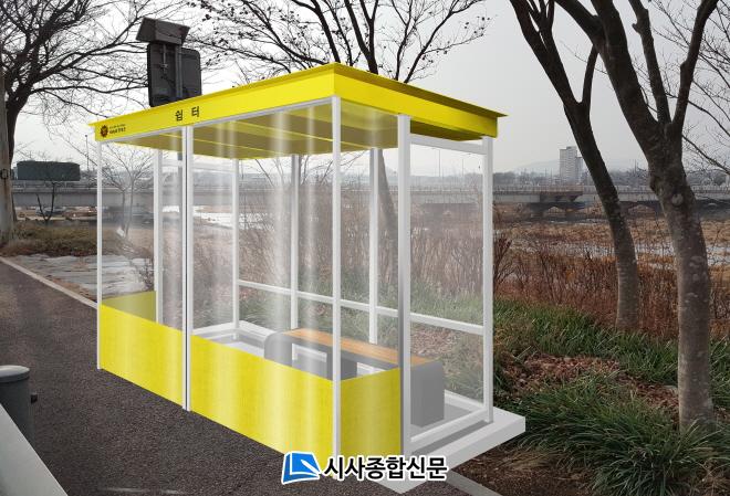 ÀÌ¿¡ À强±ºÀº ÇѰܿï ÃßÀ§¸¦ ÇÇÇÏ°í ¿©¸§¿¡µµ ¶ß°Å¿î ÇÞºµÀ» ÇÇÇÒ ¼ö ÀÖ´Â ½°Å͸¦ Á¶¼ºÅ°·Î Çϰí ÇöÀç ¹ö½º ž½Â ´ë±â Àå¼Ò¿¡ ½°Å͸¦ Á¶¼º ÁßÀÌ´Ù. ½°ÅÍ´Â 4.2§³ ±Ô¸ðÀÇ ¹ö½ºÁ¤·ùÀå ÇüÅ·Π¸¸µé¾î ½±°Ô ´«¿¡ ¶çµµ·Ï ÇßÀ¸¸ç, °Ü¿ïö¿¡´Â ¾ÕÂÊ¿¡ º°µµ Åõ¸íÇÑ ¹Ù¶÷¸·ÀÌ¿ë ºñ´ÒÀ» ¼³Ä¡ÇØ ÃßÀ§¸¦ ¸·µµ·Ï Çß´Ù.