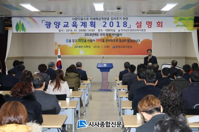 À̳¯ ¼³¸íȸ¿¡¼´Â ±¤¾ç±³À° 2017 ÁÖ¿ä ¼º°ú ¹× °úÁ¦¸¦ ½ÃÀÛÀ¸·Î ±¤¾ç±³À° 2018ÀÇ ¹æÇâ ¹× ¸ñÇ¥¿Í °¢ °ú¿¡¼ ÃßÁøÇÏ°Ô µÉ ±¤¾ç±³À°ÀÇ 5´ë ÁÖ¿ä ½ÃÃ¥, 2´ë ¿ªÁ¡°úÁ¦¿Í ±¤¾çƯ»ö±³À°È°µ¿ µîÀ» ¼³¸íÇÏ¿´´Ù.