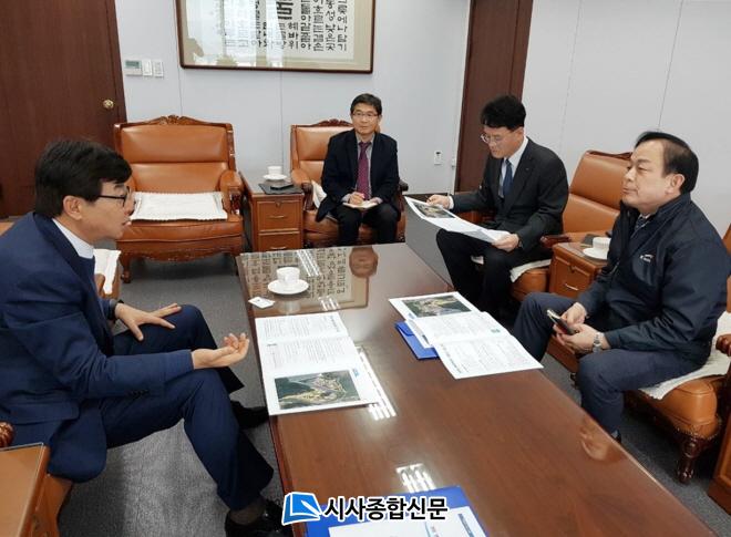 ÀÍ»êÁö¹æ±¹Åä°ü¸®Ã»Àº ŽÁø° ´ë¾ßº¸ Àç°¡¼³(25¾ï¿ø) ³»¿ëÀ» Æ÷ÇÔÇÑ Å½Áø° Á¾ÇÕ°³¹ß °ü·Ã ÀåÈﱺÀÇ °ÇÀÇ»çÇ×À» ¼ö·ÅÇϰí, À̸¦ ±àÁ¤ÀûÀ¸·Î °ËÅäÇϰڴٴ ÀÔÀåÀ» ¹àÇû´Ù. °°Àº ³¯ Çѱ¹¼öÀÚ¿ø°ø»ç º»»ç¸¦ ¹æ¹®ÇÑ ÀåÈﱺÀº ÀåÈï´ï »ýŹ®È°ø¿ø ÀåÈﱺ À̰ü°ú ÀåÈï º´ÀÔ¼öµ¾¹° °øÀå °Ç¸³À» ÇùÀÇÇß´Ù.
