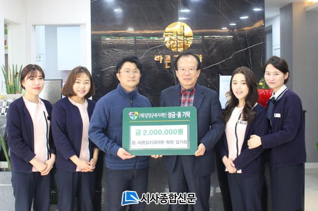 [´ã¾ç/½Ã»çÁ¾ÇսŹ®]¿À½ÂÅà ±âÀÚ = ´ã¾ç±ºº¹ÁöÀç´Ü(ÀÌ»çÀå ±è¿ë)Àº ÃÖ±Ù ´ã¾çÀ¾¿¡ ¼ÒÀçÇÑ ¹Ù¸¥±æÄ¡°úÀÇ¿ø(¿øÀå ±æ±â¼º)¿¡¼ ¼³ ¸íÀýÀ» ¸Â¾Æ Áö¿ªÀÇ ¾î·Á¿î ÀÌ¿ô¿¡°Ô ½á´Þ¶ó¸ç 2¹é¸¸¿øÀÇ ¼º±ÝÀ» Àç´Ü¿¡ ±âÅ¹ÇØ¿Ô´Ù°í ¹àÇû´Ù.