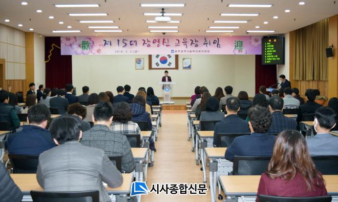 [±¤ÁÖ/½Ã»çÁ¾ÇսŹ®]¿À½ÂÅà ±âÀÚ = ±¤ÁÖ±¤¿ª½Ãµ¿ºÎ±³À°Áö¿øÃ» Á¦15´ë À念½Å ±³À°ÀåÀÌ 3¿ù2ÀÏ ÃëÀÓ½ÄÀ» °®°í º»°ÝÀûÀÎ ¾÷¹«¸¦ ½ÃÀÛÇß´Ù.