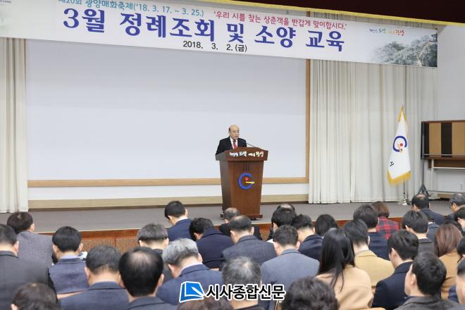 °ø¹«¿ø 200¿© ¸íÀÌ Âü¿©ÇÑ °¡¿îµ¥ ¿¸° À̳¯ Á¤·ÊÁ¶È¸¿¡¼ Á¤ ½ÃÀåÀº ¡°¹Î¼± 6±â¸¦ ¸¶¹«¸® ÇÏ´Â ÇØ·Î ´õ Å« ±¤¾ç ½Ã¹ÎÀÇ ÇູÀ» À§ÇØ »õ·Î¿î °¢¿À·Î ¿¬ÃÊ¿¡ °èȹ Çß´ø °¢Á¾ Çö¾È»ç¾÷°ú ½ÃÃ¥»ç¾÷µéÀÌ Â÷Áú ¾øÀÌ ÁøÇàµÉ ¼ö ÀÖµµ·Ï °¢ ºÎ¼Àå Ã¥ÀÓ ÇÏ¿¡ ÇϳªÇϳª ²Ä²ÄÇÏ°Ô Á¡°ËÇϸç, ÃßÁø¿¡ ¹ÚÂ÷¸¦ °¡ÇØ ÁÙ °Í¡±À» ÁÖ¹®Çß´Ù.