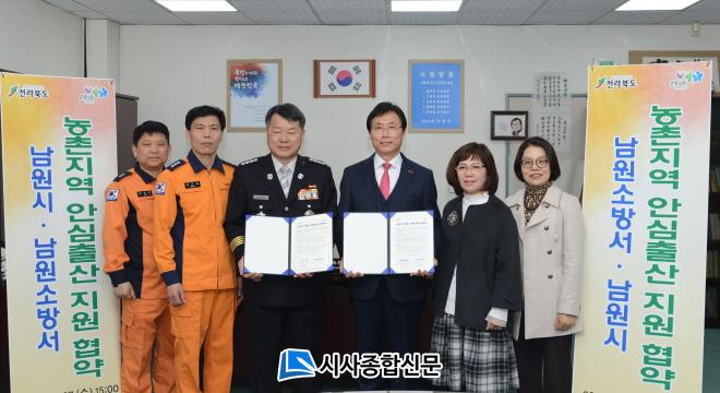 ³²¿ø½Ã(½ÃÀå ÀÌȯÁÖ)¿Í ³²¿ø¼Ò¹æ¼(¼Àå Á¶¿ëÁÖ)´Â 7ÀÏ 'Ãâ»ê»ê¸ð 119 ¾È½ÉÄݼ¾ÅÍ'¸¦ ¿î¿µ ¾÷¹«Çù¾àÀ» ¸Î¾ú´Ù. Ãâ»ê»ê¸ð 119 ¾È½ÉÄݼ¾ÅÍ' »ç¾÷Àº, ³óÃÌÁö¿ª Ãë¾à½Ã°£´ë¿¡ Ãâ»ê¡Èĸ¦ º¸ÀÌ´Â Àӽźΰ¡ À§±ÞÇÑ »óȲ¿¡¼ 119¸¦ ºÎ¸£¸é ÀÀ±Þ»óȲ¿¡ À绡¸® ´ëóÇÒ ¼ö ÀÖ´Â Àη°ú Àåºñ°¡ °®ÃçÁø À̼ÛÂ÷·®ÀÌ Ã⵿Çϰí, ÀÇ·á±â°ü±îÁö ½Å¼ÓÇÏ°í ¾ÈÀüÇÏ°Ô À̼ÛÇÏ°Ô µÈ´Ù.