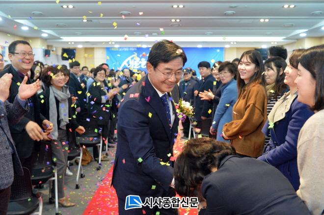 12ÀÏ ³²±¸¿¡ µû¸£¸é À̳¯ ¿ÀÀü ±¸Ã» 8Ãþ ´ëȸÀǽǿ¡¼ ÃÖ¿µÈ£ ±¸Ã»Àå ÀÌÀÓ½Ä Çà»ç°¡ ¿·ÈÀ¸¸ç, ±¸Ã» Á÷¿øÀ» ºñ·ÔÇØ Áö¿ªÁÖ¹Î, ÃÖ¿µÈ£ ±¸Ã»Àå °¡Á· µî 300¿©¸í °¡·®ÀÌ Âü¼®Çß´Ù. ÀÌÀÓ½Ä Çà»ç´Â Á÷¿øµé°ú ÁֹεéÀÌ Á÷Á¢ Á¦ÀÛ?Âü¿©ÇÑ ÃÖ¿µÈ£ ±¸Ã»ÀåÀÇ ¹Î¼± 5?6±â ¹ßÀÚÃ븦 µÇµ¹¾Æº¸´Â ¿µ»ó¹° »ó¿µ°ú °¢±Þ »çȸ´Üü ¹× ±â°ü µî¿¡¼ ÁغñÇÑ °ø·ÎÆÐ µî Àü´Þ, ÅäÅ© ÄܼƮ ¼øÀ¸·Î ÁøÇàµÆ´Ù.