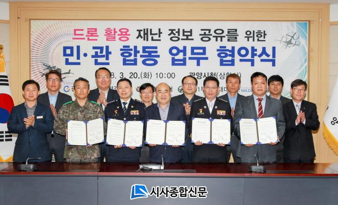 ±¤¾ç½Ã´Â 3¿ù 20ÀÏ ½Ãû »óȲ½Ç¿¡¼ ±¤¾ç°æÂû¼, ±¤¾ç¼Ò¹æ¼, 7391ºÎ´ë 4´ë´ë, (ÁÖ)³¯´Ù¿Í µå·ÐÀ» Ȱ¿ëÇÑ Àç³Á¤º¸ °øÀ¯¸¦ À§ÇÑ ¹Î∙°ü ÇÕµ¿ ¾÷¹«Çù¾àÀ» ü°áÇß´Ù°í ¹àÇû´Ù. À̳¯ Çù¾à½Ä¿¡´Â Á¤Çöº¹ ±¤¾ç½ÃÀå, ¹ÚÁ¾½Ä ±¤¾ç°æÂû¼Àå, ÃÖµ¿Ã¶ ±¤¾ç¼Ò¹æ¼Àå, ±è¿µ¼· 4´ë´ëÀå, °ü°èÀÚ µî 10¿© ¸íÀÌ Âü¼®Çß´Ù.