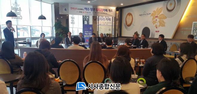 20ÀÏ ¿©¼ö½Ã¿¡ µû¸£¸é 19ÀÏ ¿£Á¦¸®³Ê½º ½ÖºÀÁ¡¿¡¼ ¿©¼ö½Ã û³â ÀÏÀÚ¸®Ä«Æä °³¼Ò½ÄÀÌ ¿·È´Ù. À̳¯ °³¼Ò½Ä¿¡´Â ÃÖÁ¾¼± ¿©¼ö½Ã ºÎ½ÃÀå, Á¤¿µÁØ Àü³²Ã¢Á¶°æÁ¦Çõ½Å¼¾ÅÍÀå, Áö¿ª ´ëÇÐ °ü°èÀÚ µîÀÌ Âü¼®Çß´Ù.