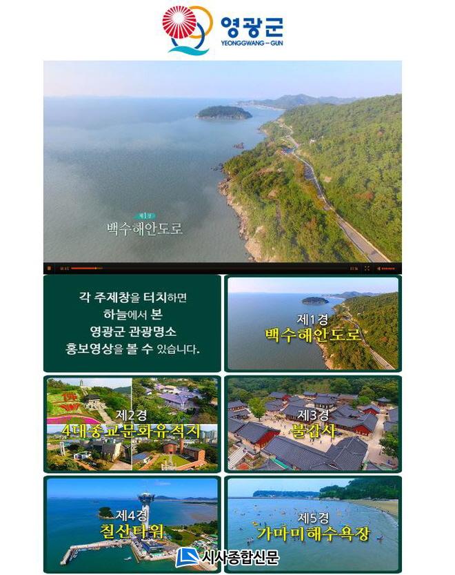 °¢ °ü±¤Áöº°·Î ¿µ»óÀº 1ºÐ~1ºÐ30ÃÊ Á¤µµ·Î ±¸¼ºµÇ¸ç ÀÚ¸·, ³»·¹À̼Ç, ¹è°æÀ½¾ÇÀÌ Æ÷ÇÔµÈ È«º¸¿µ»óÀ¸·Î ÀÌ ¿µ»óÀ» ÅëÇØ ¿µ±¤±ºÀÇ 9°æ °ü±¤Áö¸¦ ¿µ±¤±º ȨÆäÀÌÁö»Ó¸¸ ¾Æ´Ï¶ó QRÄڵ带 ½ºÄµÇÏ¿© ½º¸¶Æ®ÆùÀ¸·Îµµ ¼Õ½±°Ô Á¢±ÙÇÒ ¼ö ÀÖ°Ô µÇ¾ú´Ù.