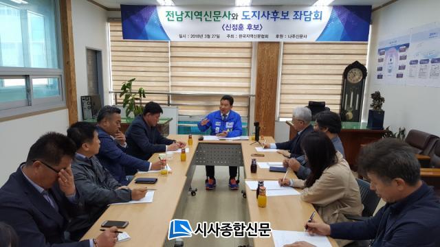 | ½ÅÁ¤ÈÆ Àü³²µµÁö»ç ¿¹ºñÈ帰¡ 27ÀÏ ¿ÀÀü Çѱ¹Áö¿ª½Å¹®Çùȸ°¡ ÁÖ°üÇÑ ¡®Àü³²Áö¿ª½Å¹®»ç¿Í µµÁö»ç Èĺ¸¿ÍÀÇ °£´ãȸ¡¯¿¡¼ ¾ê±â¸¦ ³ª´©°í ÀÖ´Ù. |