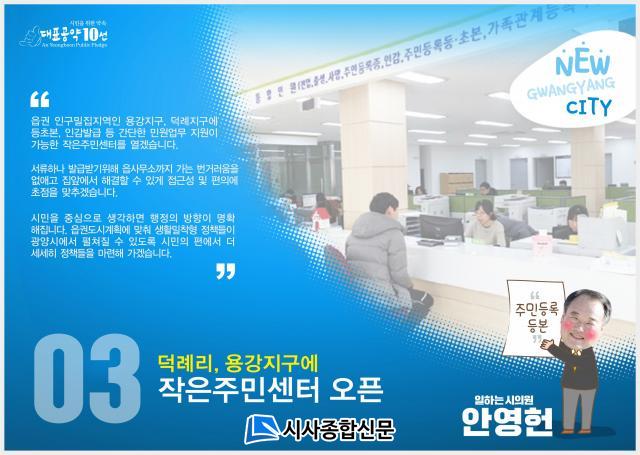 ¾È¿µÇå ¿¹ºñÈ帴 29ÀÏ ¡®ÀÏÇÏ´Â ½ÃÀÇ¿øÀÇ Á¤Ã¥¾È³» Á¦3ź ÀÛÀºÁֹμ¾ÅÍ ¿ÀÇ¡¯À» ¾à¼ÓÇÏ¸ç ½Ã¹ÎµéÀÇ ÆíÀǸ¦ µ½´Â »ýȰ¹ÐÂøÇü °ø¾àÀ» ¼±º¸¿´´Ù.