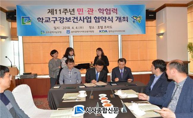 5ÀÏ ³²±¸¿¡ µû¸£¸é Áö³ 4ÀÏ ¿ÀÀü ¹é¿îµ¿ ÇÁ¶óµµÈ£ÅÚ¿¡¼ ¡®2018³âµµ ¹Î.°ü.ÇÐ Çù·Â Çб³ ±¸°º¸°Ç »ç¾÷ Çù¾à½Ä¡¯ÀÌ ¿·È´Ù. À̳¯ Çù¾à½Ä¿¡´Â ÀÌÁ¤»ï ³²±¸Ã»Àå ±ÇÇÑ´ëÇàÀ» ºñ·ÔÇØ ±¤ÁÖ ¼ºÎ±³À°Áö¿øÃ», ³²±¸ °ü³» 7°³ ÃʵîÇб³ °ü°èÀÚ, ³²±¸ Ä¡°úÀÇ»çȸ ¹× ¼Ò¼Ó Ä¡°úÀÇ¿ø 12°÷ °ü°èÀÚ µîÀÌ Âü¼®Çß´Ù.