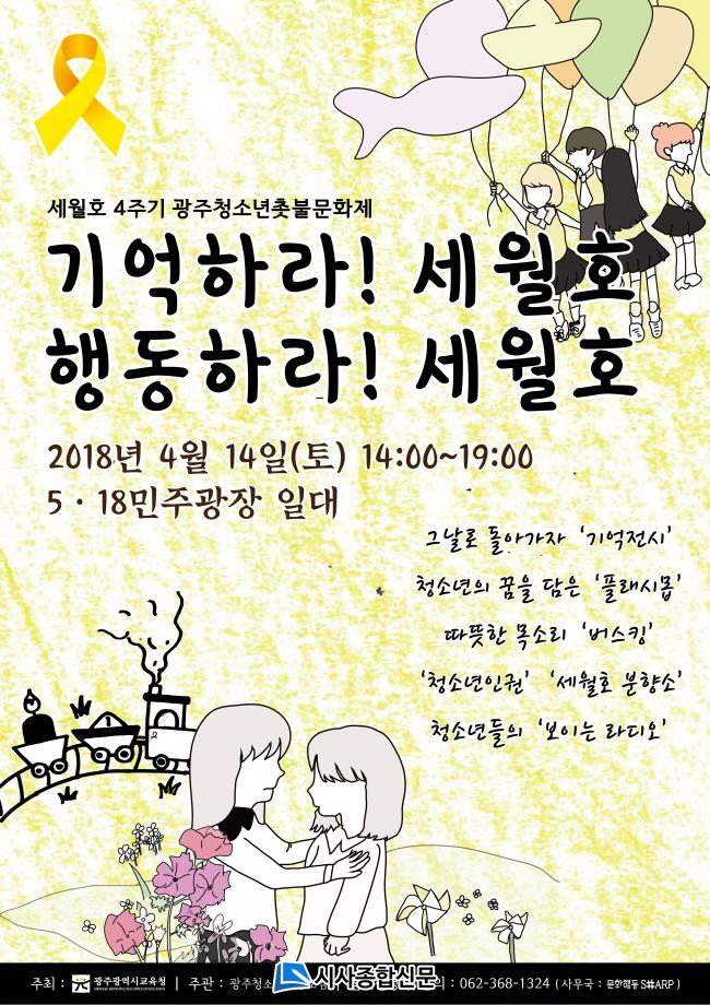 ±¤Áֽñ³À°Ã»ÀÌ ÁÖÃÖÇÏ°í ¡®±¤ÁÖû¼Ò³âÃкҸðÀÓ¡¯ÀÌ ÁÖ°üÇÑ À̹ø Çà»ç´Â Èñ»ýÀÚ¸¦ Ã߸ðÇÏ´Â µ¿½Ã¿¡ Âü»ç Áø»ó±Ô¸í°ú ¾ÈÀüÇÏ°í °Ç°ÇÑ ¼¼»óÀ» ¿ä±¸Çϴ û¼Ò³âµéÀÇ ¼Ò¸Á°ú ÁÖÀåÀ» ´ã±â À§ÇØ ±âȹµÆ´Ù. Çà»ç ÇÁ·Î±×·¥Àº û¼Ò³âµéÀÌ Á÷Á¢ ±âȹÇϰí ÁغñÇß´Ù. ¼¼¿ùÈ£ ±â¾ï Àü½Ã, ¹ö½ºÅ·(°Å¸®°ø¿¬), Ç÷¡½Ã¸ðºê, üÇèºÎ½º, °øµ¿Ã¼ ¿µÈ»ó¿µÈ¸ µî°ú ¼¼¿ùÈ£ ½Ã¹ÎºÐÇâ¼Ò°¡ ÇÔ²² ¿î¿µµÈ´Ù.