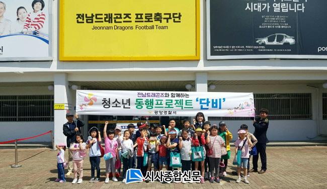 [±¤¾ç/½Ã»çÁ¾ÇսŹ®]¿À½ÂÅà ±âÀÚ = ±¤¾ç°æÂû¼(¼Àå ¹ÚÁ¾½Ä)´Â 4¿ù 21ÀÏ Ã»¼Ò³â µ¿Çà ÇÁ·ÎÁ§Æ® '´Üºñ(1Â÷)' ½Ç½ÃÇÏ¿© Áö¿ª¾Æµ¿¼¾ÅÍ 23¸í ÇлýµéÀ» ¼±Á¤ÇÏ¿© ÇÔ²² Àü³² µå·¡°ïÁî Ã౸ °æ±â¸¦ °ü¶÷ÇÏ¿´´Ù.