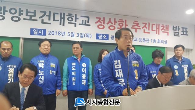 ¶ÇÇÑ, ¡°»çȸºÎÃѸ® °â ±³À°ºÎÀå°üÀ» ¸¸³ª ±¤¾ç½Ã¿Í Àü¶ó³²µµ°¡ ÀçÁ¤±â¿©¸¦ ÅëÇÑ Á¤»óÈ ¹æ¾È¿¡ µû¶ó ±¤¾çº¸°Ç´ë¿¡ ´ëÇÑ ±¹°¡ÀåÇбݰú ÇÐÀÚ±Ý ´ëÃâ Á¦ÇÑÀ» ÁßÁöÇϵµ·Ï Àû±Ø °ÇÀÇÇϰí, ´ç¼± ÈÄ Áý±Ç´ç ½ÃÀå ÀÚ°ÝÀ¸·Î ¹®ÀçÀÎ ´ëÅë·ÉÀÇ ±¹Á¤°úÁ¦ÀÎ °ø¿µÇü »ç¸³´ë Àüȯ¿¡ ´ëÇØ Áß¾ÓÁ¤ºÎ¿¡ °·ÂÈ÷ °ÇÀÇÇÏ¿© ±¤¾çº¸°Ç´ë Á¤»óȸ¦ È®½ÇÈ÷ ¸¶¹«¸® Áþ°Ú´Ù¡±°í ÈÄ¼Ó Á¶Ä¡¸¦ ¼³¸íÇß´Ù.