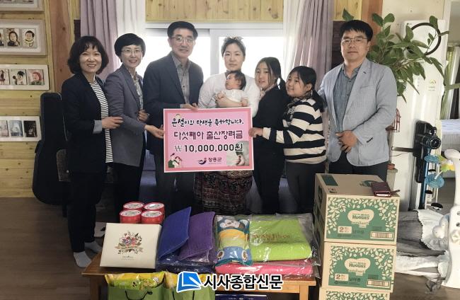 ÀåÈﱺÀº Áö³ 4ÀÏ ¾î¸°À̳¯À» ¾ÕµÎ°í ´Ù¼¸Â° ¾Æ±â¸¦ Ãâ»êÇÑ °¡Á¤À» ã¾Æ ¾Æ±âÀÇ Åº»ýÀ» ÃàÇÏÇϰí, ´Ù¾çÇÑ À°¾Æ¿ëǰÀ» Àü´ÞÇß´Ù. Ãâ»êÀå·Á±Ý Áö±ÞÁõ¼¿Í À°¾Æ ¿ëǰ ¿Ü¿¡µµ, Æí¹é½£ ÇϿ콺, ¸²ÇÁ¸¸, ¿¤µð¸¶Æ®, ¸ÞÀÌ ½ºÆ©µð¿À, ºñ³Ê½º µî Áö¿ª »ç¾÷ü¿¡¼ ÁØ ¼±¹°µµ ÇÔ²² Àü´ÞÇß´Ù.