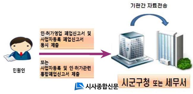 Æó¾÷½Å°í ¿ø½ºÅé ¼ºñ½º´Â Æó¾÷À» ÇÒ °æ¿ì ÀÎÇã°¡ °üûÀÎ ±ºÃ»°ú »ç¾÷ÀÚ µî·Ï °üûÀÎ ¼¼¹«¼¿¡¼ °¢°¢ Æó¾÷½Å°í¸¦ ÇØ¾ß Çß´ø ºÒÆíÀ» ÇØ¼ÒÇϰíÀÚ, Æó¾÷½Å°í½Ã ±ºÃ»°ú ¼¼¹«¼ ÇÑ °÷¸¸ ¹æ¹®ÇØ ½Å°í ó¸® ÇÒ ¼ö ÀÖµµ·Ï ÇÏ´Â ÇÕ¸®ÀûÀÎ Á¦µµÀÌ´Ù.