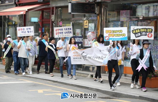 °¡µÎÄ·ÆäÀÎÀº ¼¼°è ±Ý¿¬ÀÇ ³¯À» ¸ÂÀÌÇÏ¿© ´ã¹è¿¡ ´ëÇÑ ÀÇÁ¸À¸·ÎºÎÅÍ Å»ÇÇÇÒ ¼ö ÀÖ´Â °è±â¸¦ ¸¶·ÃÇϰí Èí¿¬ÀÌ °Ç°¿¡ ¹ÌÄ¡´Â ÆóÇØ¸¦ Àڶ󳪴 û¼Ò³âµé¿¡°Ô °æ°¢½ÉÀ» ÁÖ°íÀÚ °Áøµ¿ÃʵîÇлý, ±³»ç, º¸°Ç¼Ò Á÷¿ø µî 100¿©¸íÀÌ Âü¼®ÇØ È«º¸È°µ¿À» ÆîÃÆ´Ù.