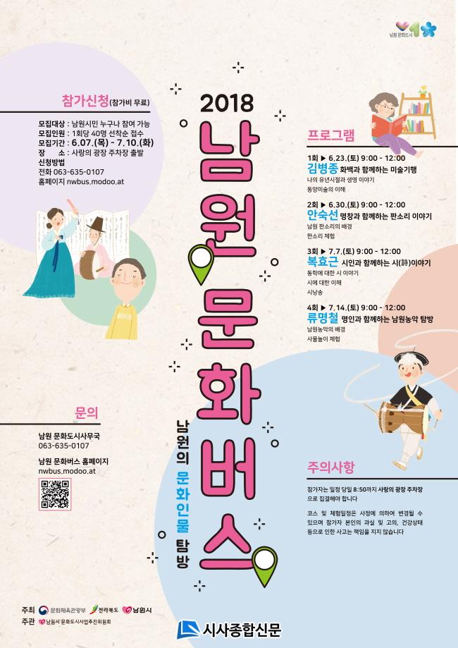 ¡º³²¿ø¹®È¹ö½º ±¸¼®±¸¼®-³²¿øÀÇ ¹®ÈÀι° Ž¹æ¡»Àº ³²¿ø½Ã¹ÎµéÀ» ´ë»óÀ¸·Î ÁøÇàµÇ¸ç ³²¿ø¹®Èµµ½Ã»ç¹«±¹ ÀüÈ(063-635-0107), ¿Â¶óÀÎ